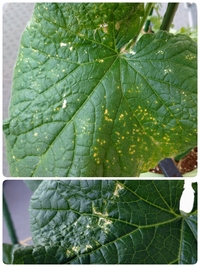 キュウリの葉にできた斑点の原因は 病気 害虫 プランター菜園をやってみよう 会社の屋上 で 収穫を目指す 会社員の熱き戦い